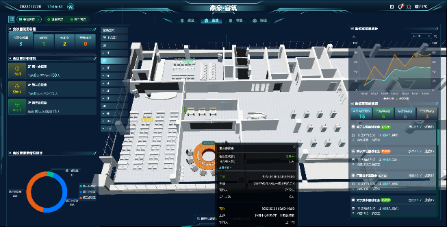 以物联网为基础对建筑数据进行统一管理,实现信息汇聚、资源共享、协同运行、优化管控等功能,给予具有安全、高效、节能、舒适等人性化功能的办公环境。